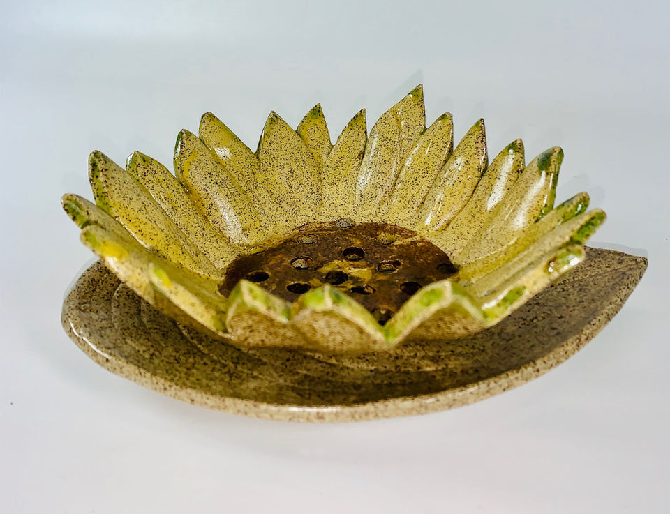 Discover the elegance and practicality of our two-piece Sunflower Berry Bowl, comprising a colander and leaf drip plate. No more using a paper towel to keep the counter dry – simply rinse your berries and take them right to the table. Also great for cherry tomatoes! Pretty enough to leave out and use all the time. Measuring 7"x6"x1.5" this bowl holds a pint.